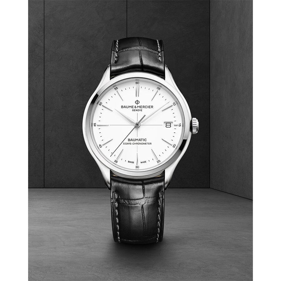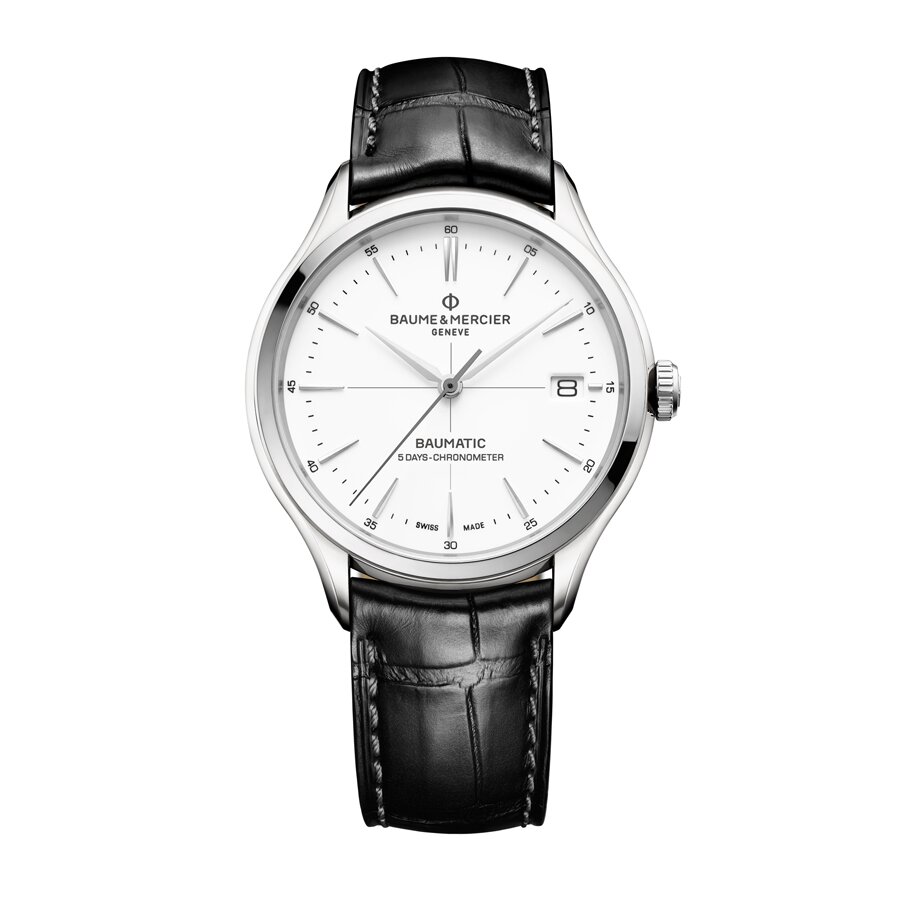 Baume & Mercier, opgericht in 1830, is een Zwitserse horlogemaker met een rijke geschiedenis van innovatie en technische excellentie. In 1973 introduceerde het merk de Riviera, een van 's werelds eerste stalen sporthorloges. Tegenwoordig omvat het assortiment onder andere de Clifton-, Classima- en Hampton-collecties, die zowel mannen als vrouwen aanspreken. Horloges uit de Clifton- of Riviera-collectie die zijn uitgerust met het in-house Baumatic-uurwerk bieden een verlengde garantie van zes jaar bovenop de standaard twee jaar, wat resulteert in een totale garantieperiode van acht jaar. Het Baumatic-uurwerk staat bekend om zijn betrouwbaarheid en nauwkeurigheid, dankzij de nieuwste generatie van dit kaliber.