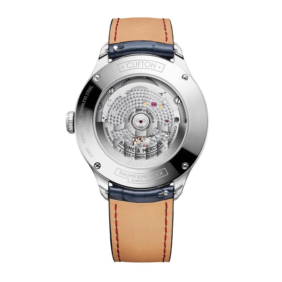 Baume & Mercier, opgericht in 1830, is een Zwitserse horlogemaker met een rijke geschiedenis van innovatie en technische excellentie. In 1973 introduceerde het merk de Riviera, een van 's werelds eerste stalen sporthorloges. Tegenwoordig omvat het assortiment onder andere de Clifton-, Classima- en Hampton-collecties, die zowel mannen als vrouwen aanspreken. Horloges uit de Clifton- of Riviera-collectie die zijn uitgerust met het in-house Baumatic-uurwerk bieden een verlengde garantie van zes jaar bovenop de standaard twee jaar, wat resulteert in een totale garantieperiode van acht jaar. Het Baumatic-uurwerk staat bekend om zijn betrouwbaarheid en nauwkeurigheid, dankzij de nieuwste generatie van dit kaliber.